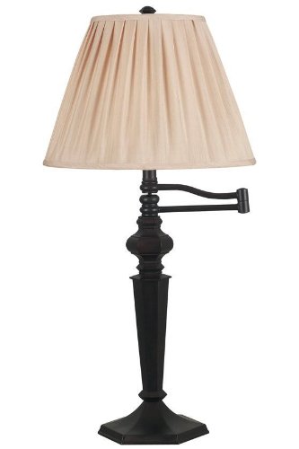 The Chesapeake Swing-Arm Table Lamp will add a finishing touch to your decor while providing light right where you need it. Perfect for your desk or nightstand, this lighting easily swings out and gives off plenty of reading light. Order today and choose this lamp for your home.Gold pleated shade adds timeless elegance.Features an oil rubbed bronze finish. Actual size is 32"Hx15"D