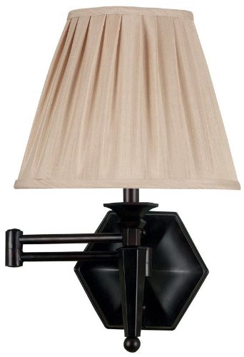 Diversify the lighting in your home with the stylish Chesapeake Swing-Arm Wall Lamp. This classic wall lighting will easily match your decor and is expertly crafted with quality in mind. Buy this wall lamp today and add some light where you need it most.Gold pleated shade adds timeless elegance.Features an oil rubbed bronze finish. Actual size is 16"Hx11"D