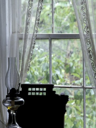 - Print Title: Oil Lamp, Table, and Lace Curtains in Mining Ghost Town, Nevada City, Montana, USA